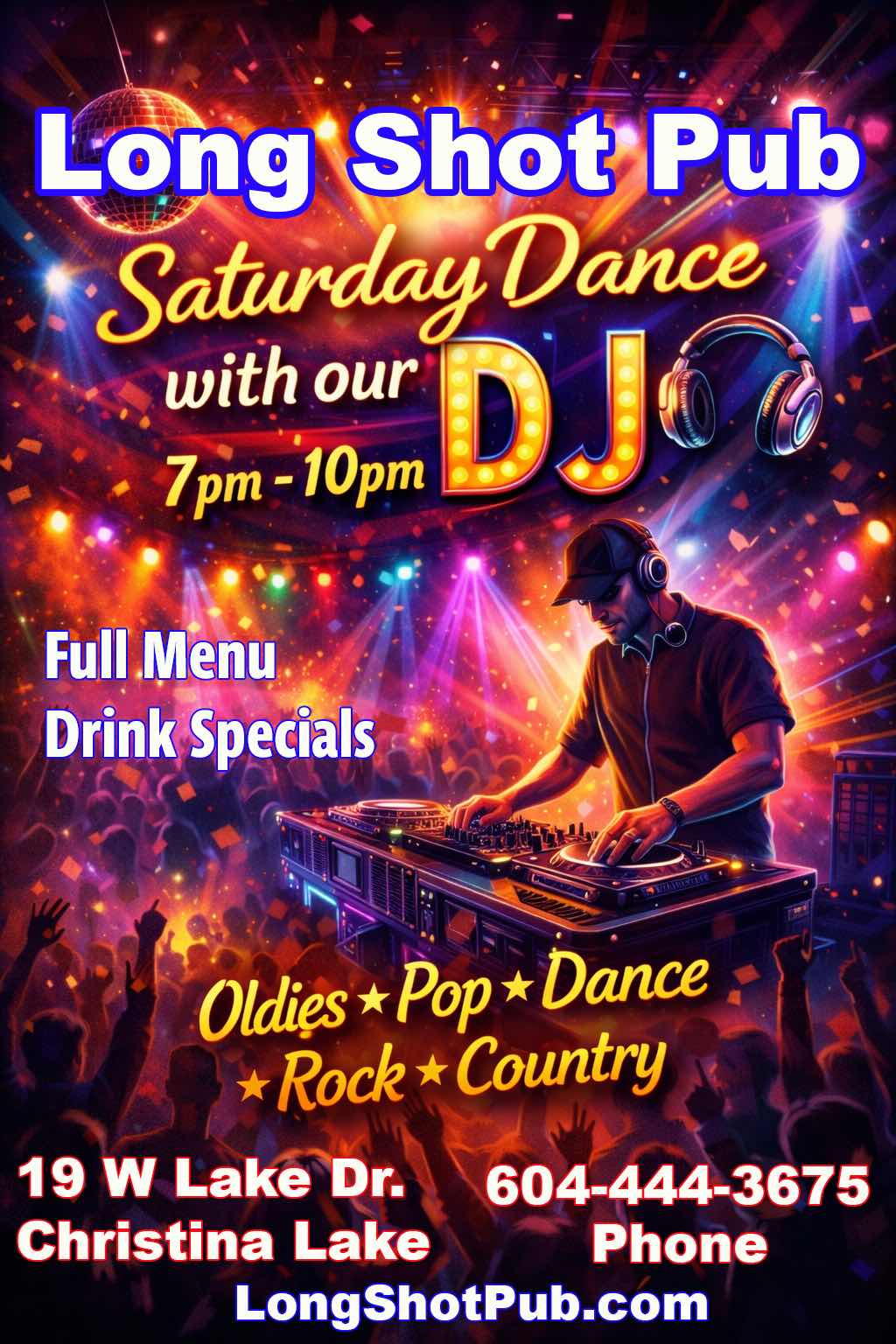 Enjoy your Saturday Night with a cold one or a flavoured cocktail while you dance the night away with Bazinga DJ spinning songs from the 1950s through to the Top 40, Country, Rock & Pop. Make your request!